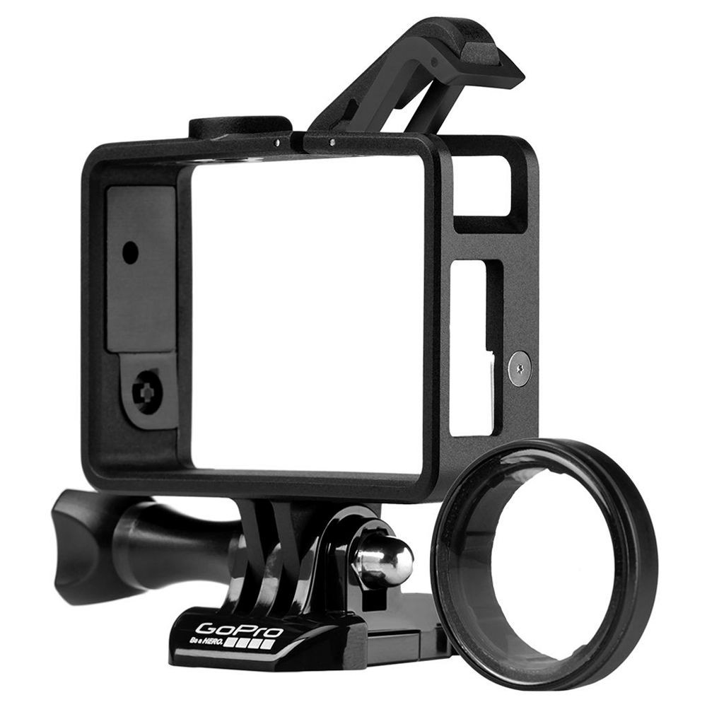 A estrutura HERO3, HERO3 +, HERO4 da GoPro para montar uma câmera de ação é adequada para aplicações onde o tamanho e o peso superam a proteção fornecida por uma caixa. Ele apresenta a interface de montagem de dois pinos padrão que permite a montagem na câmera na maioria dos acessórios GoPro. Inclui uma lente de vidro protetora para proteger a câmera contra sujeira, poeira e arranhões.