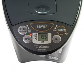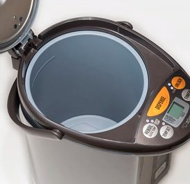 A Zojirushi também se destaca pelo indicador sonoro, que alerta facilmente sobre a conclusão do processo de fervura ou quando o nível de água está baixo. A segurança é prioridade, com a função de desligamento automático que evita superaquecimento.