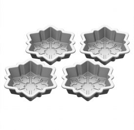 Os bolos de férias divertem a família com este conjunto Mini Snowflake. Parte da linha Seasonal Mini Bakeware da Cuisinart, essas bandejas floco de neve são feitas de aço para distribuição uniforme de calor