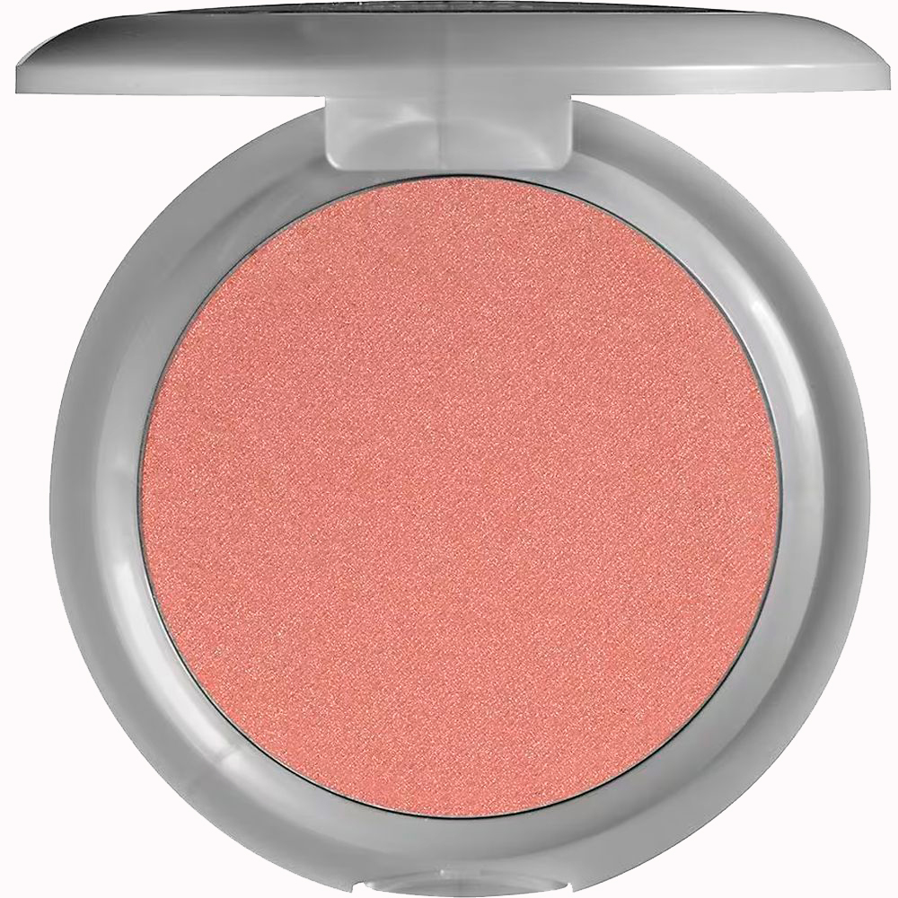 Passe levemente um pincel de blush no pó prensado e espalhe-o nas maçãs do rosto ou onde quiser adicionar cor.