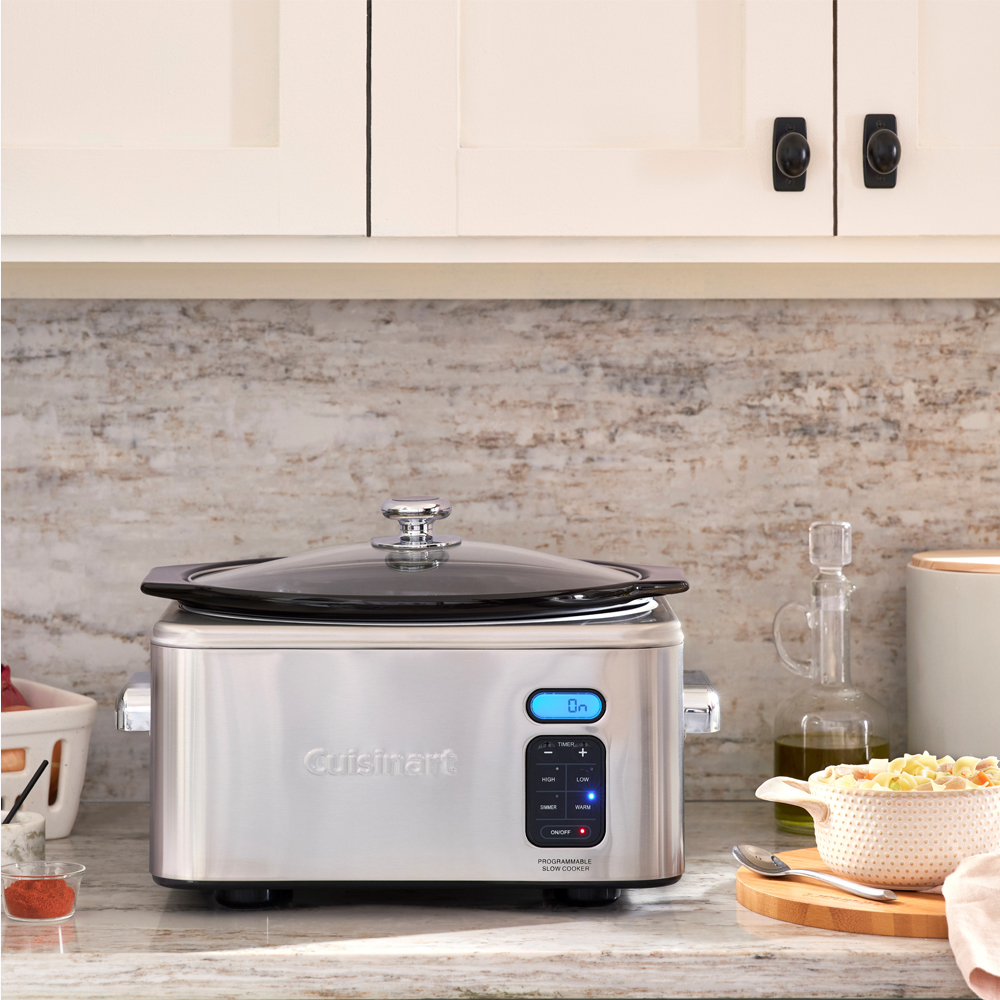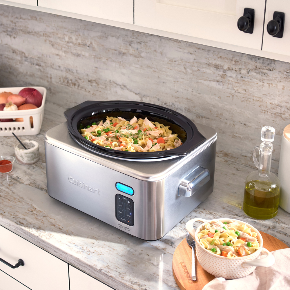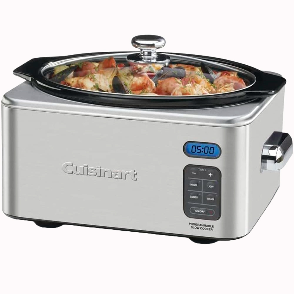A Panela Elétrica programável Cuisinart 6.5 Quart de tamanho generoso facilita as refeições em família, graças ao tempo de cozimento de 24 horas, cronômetro de contagem regressiva digital e três modos de cozimento.