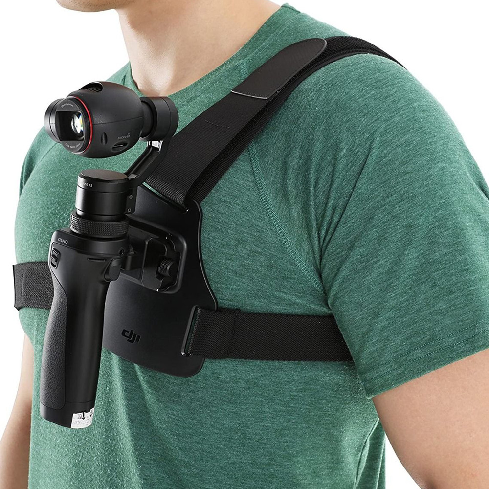 O DJI Osmo Chest Strap Mount se encaixa em seu peito e ombro e permite que você use o Osmo com as mãos livres. Permite montar o Osmo com a alça, para que você possa alternar facilmente para o uso portátil. É compatível com Osmo e Osmo +, e o acessório de fecho de velcro tem comprimento ajustável.