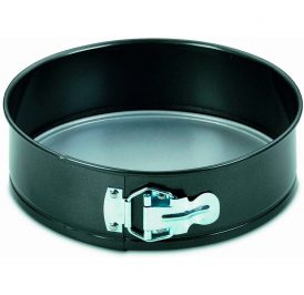 Frigideira de 9 ” em forma de mola feita de aço aluminizado de calibre pesado para aquecimento rápido e uniforme.
