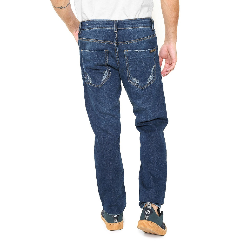 Calça masculina John John Jeans, possui fecho com botão e zíper. E também possui um rasgo no joelho.