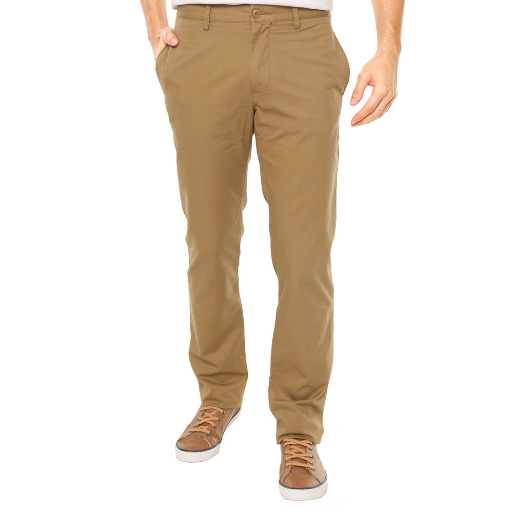 Calça Sarja Lacoste Reta Faca Bege, com design clean e quatro bolsos, sendo dois faca.