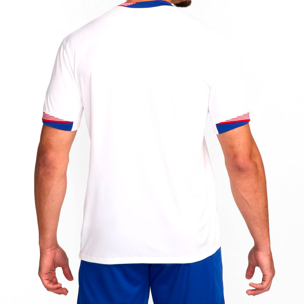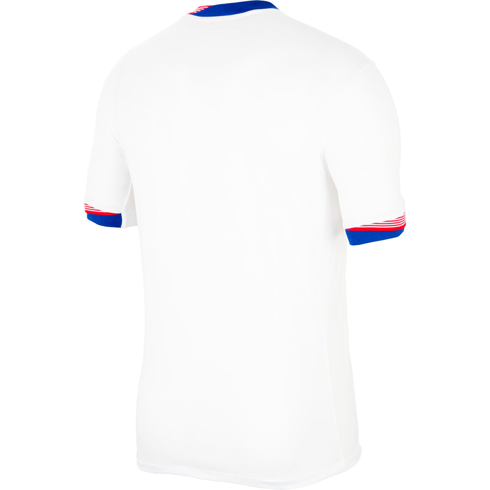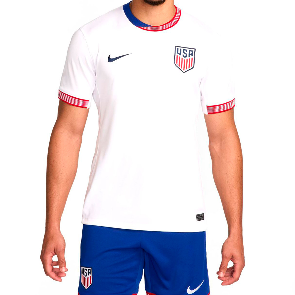 A camiseta de futebol masculina Nike é perfeita para quem busca conforto e estilo. Com detalhes que remetem à bandeira americana no pescoço e nos braços, oferece um toque de patriotismo e modernidade. A tecnologia Nike Dri-FIT garante que o suor seja afastado da pele para uma evaporação rápida, mantendo você seco e confortável. Feita em 100% poliéster, é leve, respirável e fácil de cuidar, sendo adequada para lavagem em máquina.
