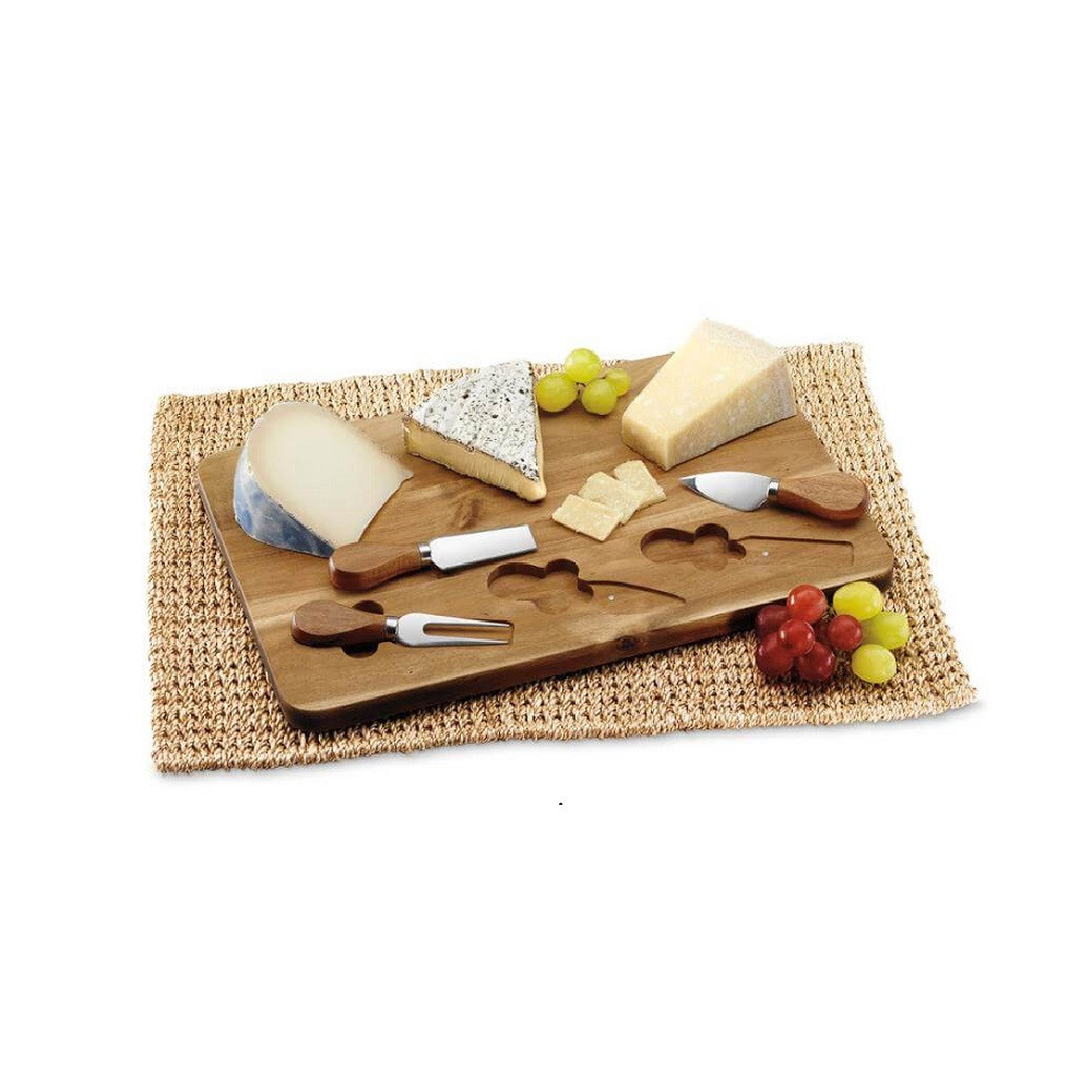 Organize uma variedade de seus queijos favoritos – um brie macio, um gouda firme e um parmesão reggiano duro – nesta bela madeira de acácia de grãos ricos e tábua de queijo em mármore.