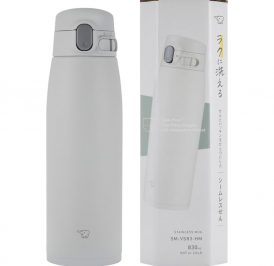 A garrafa térmica Zojirushi SM-VS83HM. Com sua cor cinza matte, ela não é apenas um recipiente, mas um símbolo de elegância e sofisticação. A paleta de cores sóbrias e o design minimalista fazem dela uma peça que não passa despercebida, seja no escritório ou em uma aventura ao ar livre.