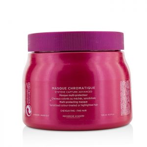 Chromatique Fine Mask 500ml é uma máscara protetora de cor para cabelos finos sensibilizados, coloridos ou com mechas. Fornece nutrição profunda à fibra sem adicionar peso. Sua ação preserva a cor e realça a textura dos fios.