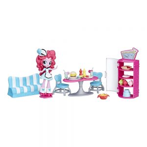 Pinkie Pie adora servir lanches doces para suas amigas! Imagine Pinkie Pie chegando até seus amigos no estilo retrô dos anos 50 com o Conjunto Pinkie Pie Sweet Snacks Café.