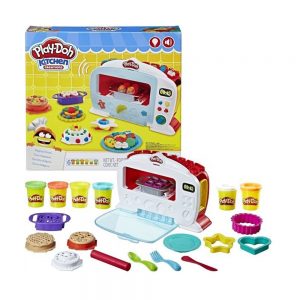 Hasbro Play-doh Dough Kitchen são excelentes para estimular a criatividade e a imaginação das crianças. Imaginando que são Child Chefs, as crianças vão divertir-se a criar a sua própria plasticina e a cozer no forno mágico, bastando premir a alavanca, aguardando que as luzes mudem de cor e o forno emite o som quando a decoração e personalização ou estiver pronto, para que possa pegue a comida.