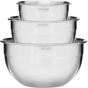 As tigelas de mistura Cuisinart unem praticidade e resistência para facilitar o dia a dia na cozinha. Com 3 recipientes de aço inoxidável, oferecem versatilidade no preparo e armazenamento de alimentos. São ideais para misturar ingredientes, organizar porções ou guardar sobras com segurança. O material não retém odores, é fácil de limpar e pode ser usado no refrigerador sem problemas. Um conjunto durável, elegante e funcional que se adapta a qualquer rotina culinária.