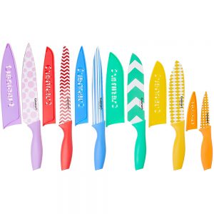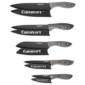Vantagem da Cuisinart As facas de aço inoxidável de qualidade profissional têm um revestimento antiaderente de última geração que facilita o fatiamento - e permite a codificação durante a preparação dos alimentos para evitar contaminação cruzada. Em tons conscientes de estilo para o consumidor de design inteligente de hoje, essas facas premium vêm com protetores de lâmina combinando e cabos ergonômicos.