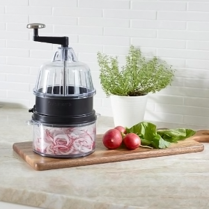 Design excepcional: a alça fácil de empurrar permite costeletas rápidas: corte qualquer coisa, desde queijo duro, nozes ou vegetais em segundos. A base permite cortar com ou sem tábua de corte