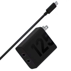 O carregador tem uma capacidade máxima de saída de 33W, comparável aos carregadores incluídos em outros dispositivos, e está equipado com uma saída USB-C que permite a inserção de duas portas. Confortável e sem complicações.