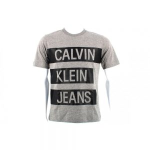 Camiseta masculina gola redonda Calvin Klein Jeans cinza Material 100% algodão. Cor cinzel e detalhes em preto.