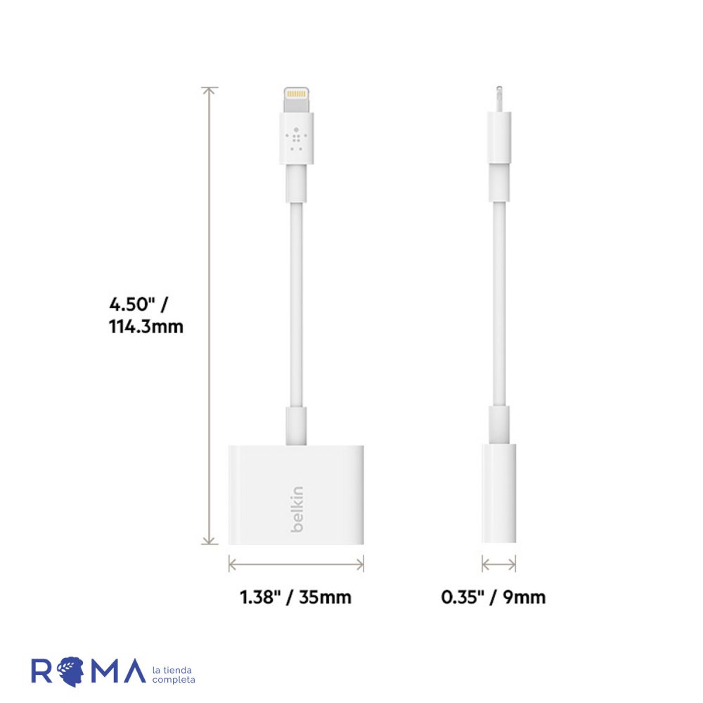 Adaptador Belkin Áudio Lightning+Energia Rockstar F8J198BTWHT Branco
