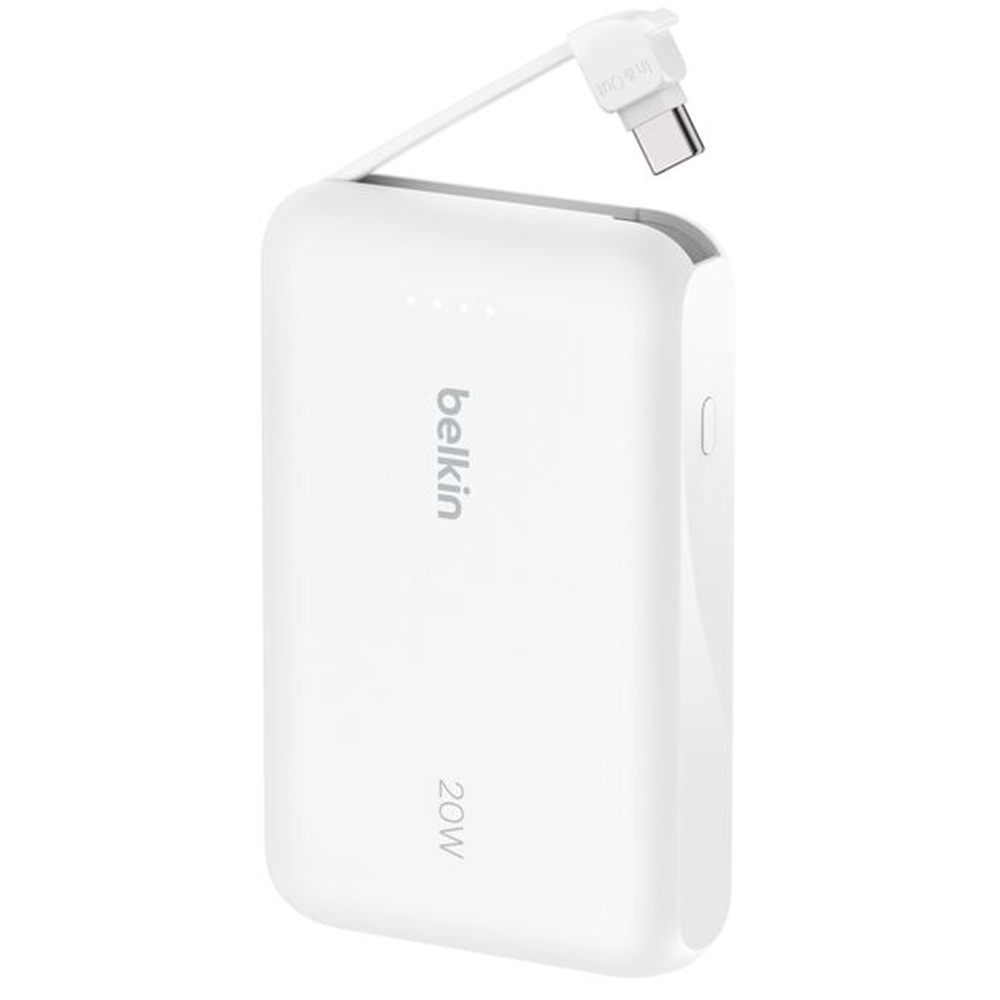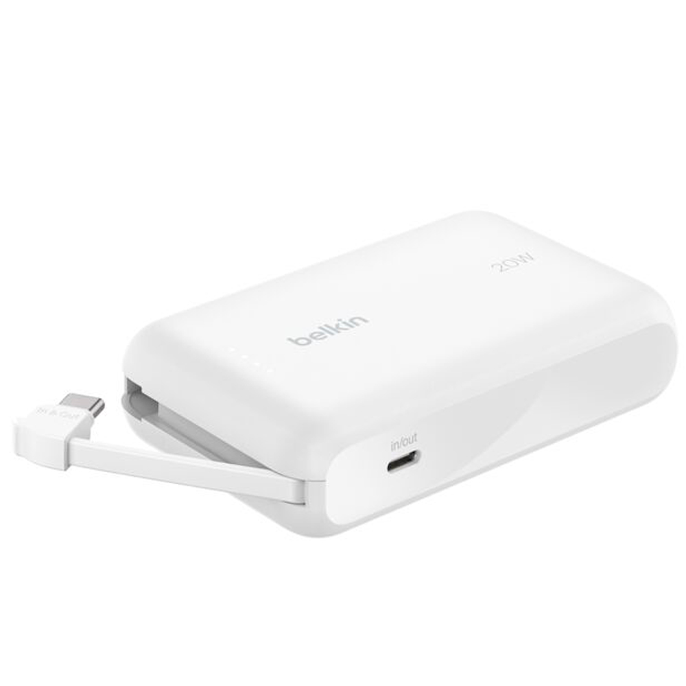 Carregador Portátil Belkin BoostCharge 10.000 mAh Cabo Integrado USB-C Branco – BPB021FQWH