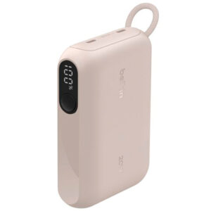 O carregador portátil magnético Belkin BoostCharge Pro 5K oferece carregamento rápido de até 15 W com tecnologia Qi2 e fixação magnética estável.