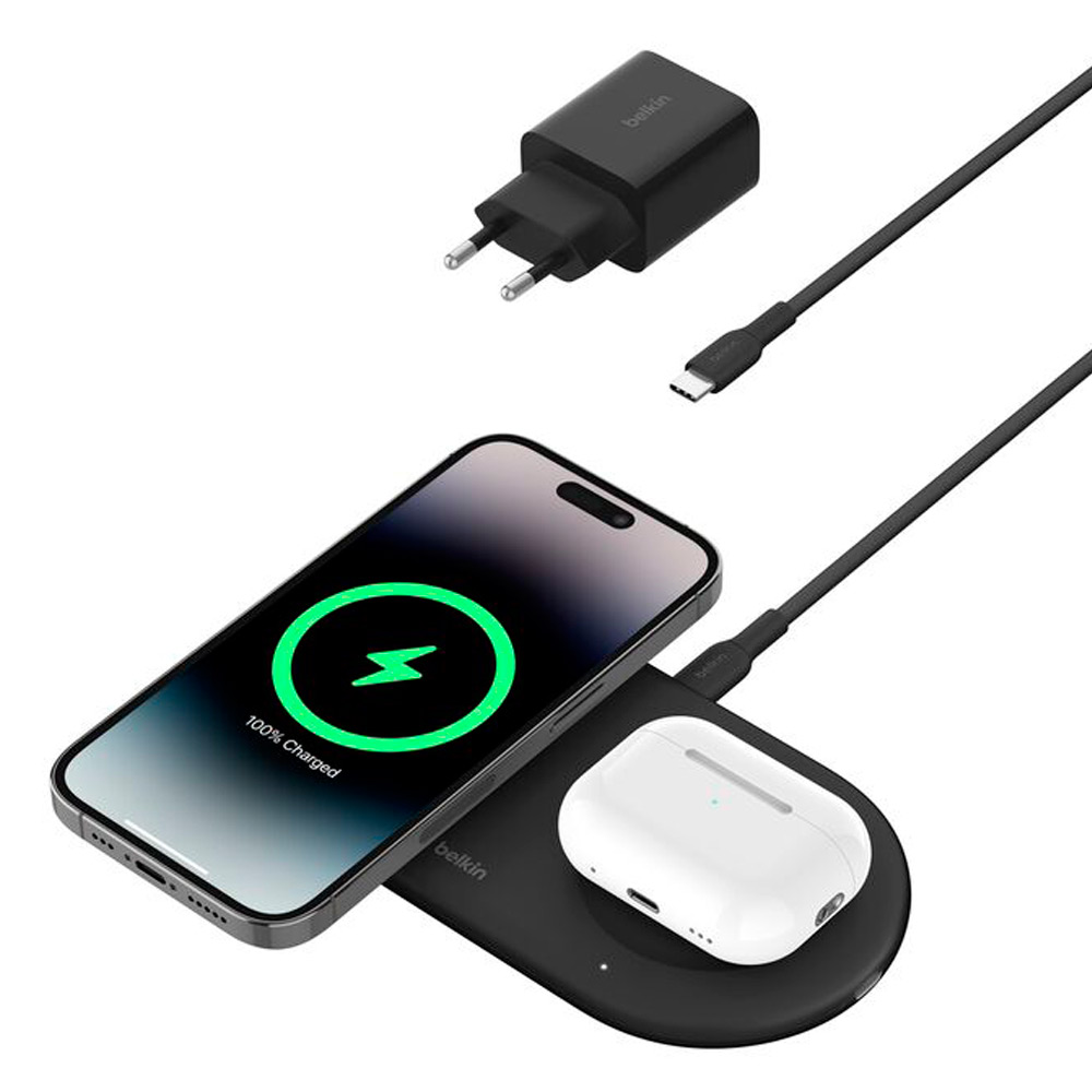 Carregador Magnético Wireless Belkin WIZ021VFBK 2-IN-1 15W Boostcharge Qi2 Magsafe – Preto