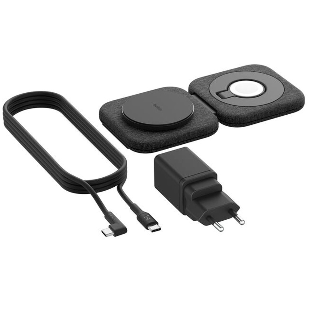 O carregador wireless Belkin com tecnologia Qi2 oferece carregamento rápido e seguro para iPhone, Apple Watch e AirPods. Seu sistema magnético compatível com MagSafe garante alinhamento preciso e eficiência energética. O design dobrável e compacto facilita o transporte, sendo ideal para viagens. O acabamento em tecido premium aumenta a durabilidade e o apelo visual. Uma solução prática para quem busca organização e carregamento sem fio de qualidade.