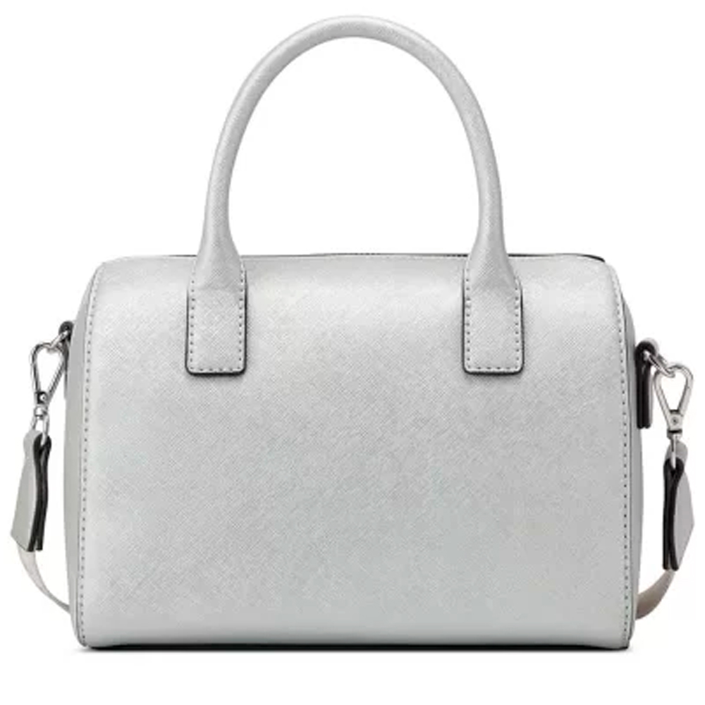 As alças na cor prata trazem um ar de sofisticação, tornando esta bolsa um acessório versátil que combina com qualquer look, seja para ocasiões casuais ou eventos mais formais.