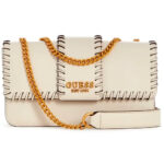 O icônico logotipo triangular da Guess na parte frontal adiciona um toque de sofisticação, tornando esta bolsa um item indispensável para quem valoriza estilo e funcionalidade.