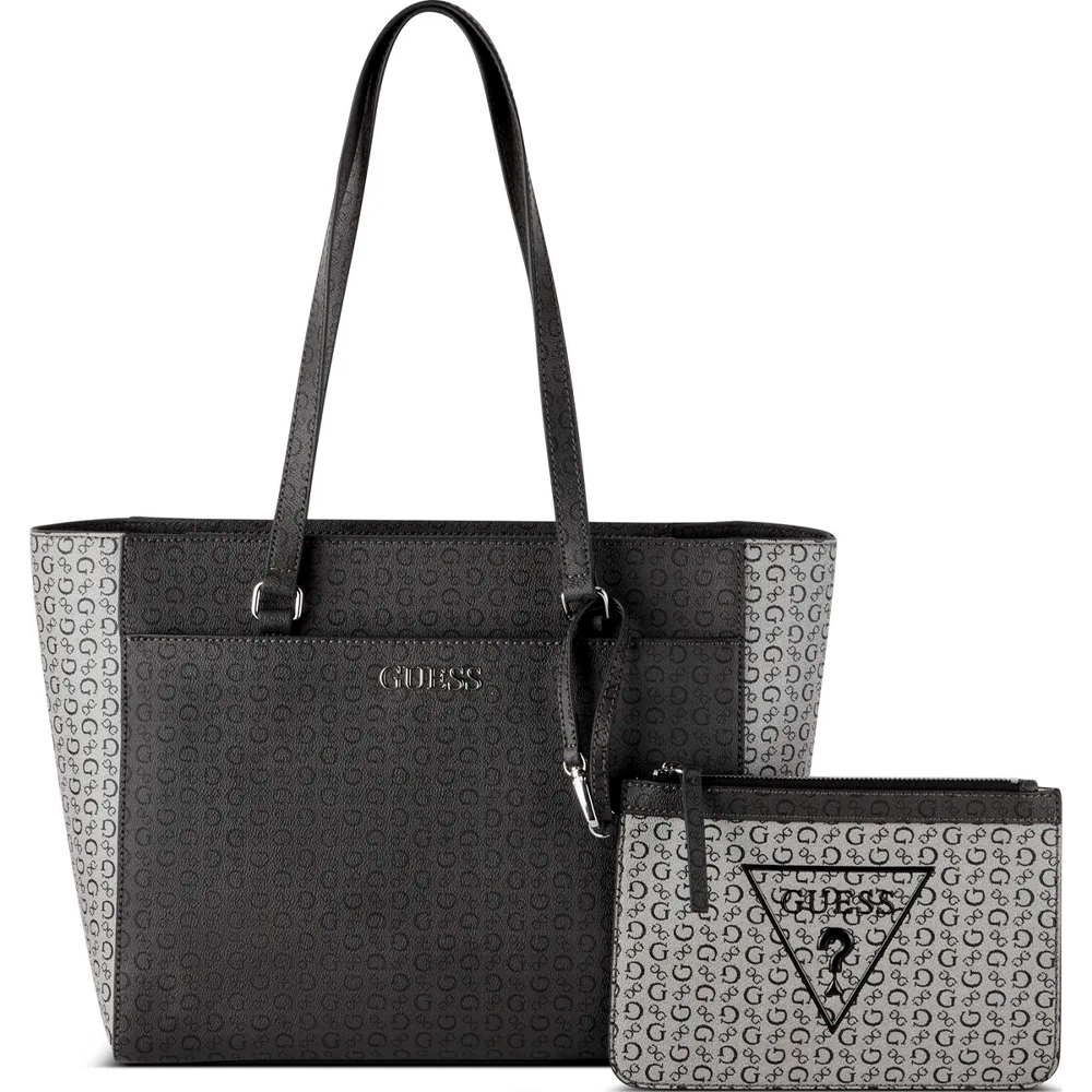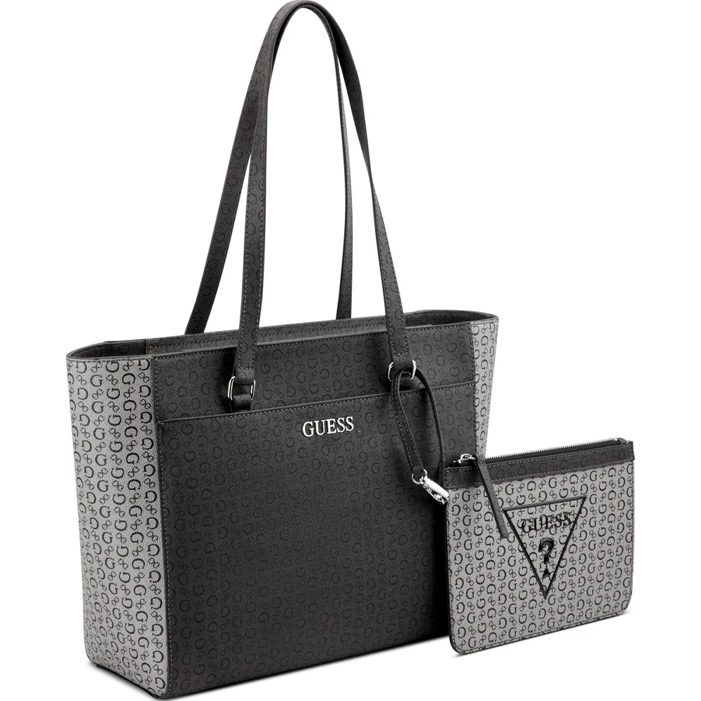 Seu estampado com o monograma da marca Guess confere um toque de identidade e exclusividade, destacando o bom gosto e a personalidade de quem a utiliza. As alças fixas de mão proporcionam conforto ao carregar e reforçam o charme clássico da peça. Além disso, o fechamento com zíper garante segurança e praticidade ao acessar os seus pertences, mantendo tudo protegido ao longo do dia.