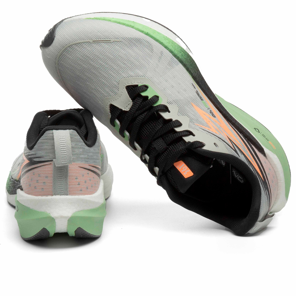 A tecnologia de amortecimento utilizada oferece uma excelente resposta a cada passo, garantindo um retorno de energia que proporciona mais velocidade e conforto durante o treino ou competição.