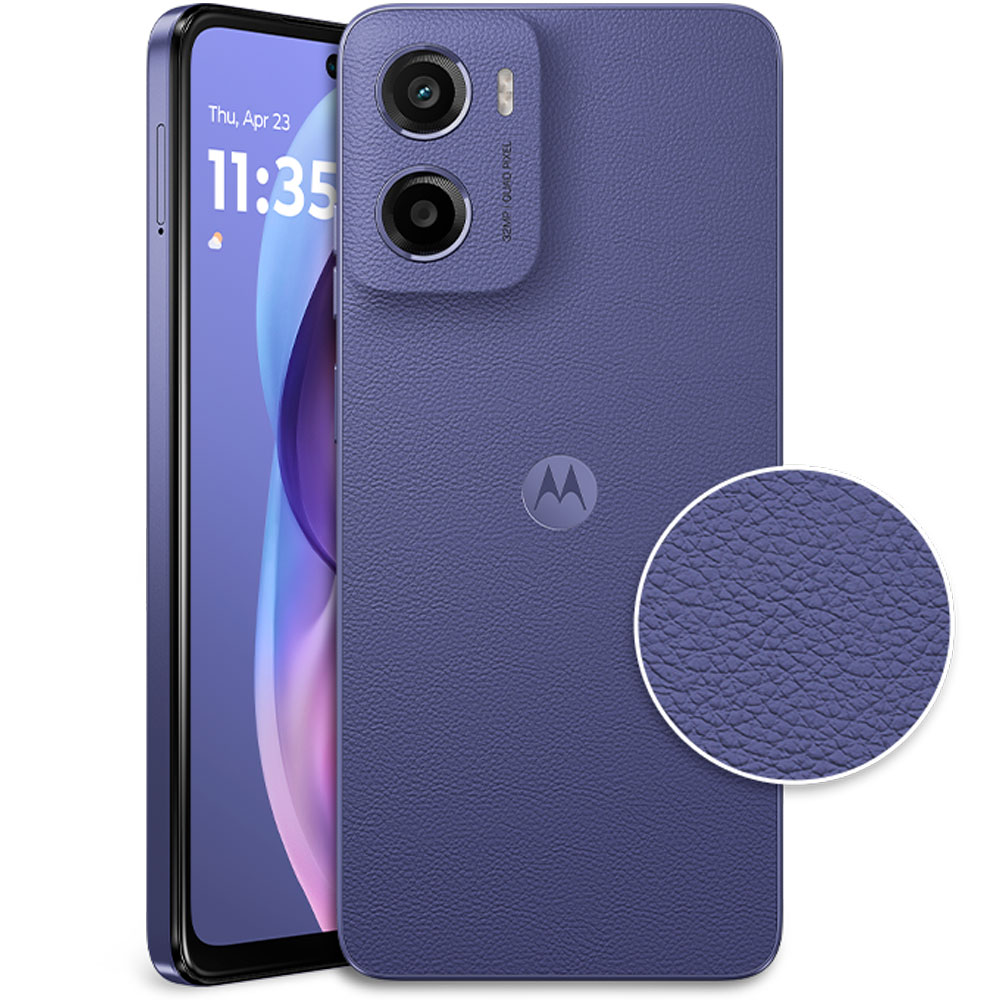 O Motorola Moto E15 oferece tela HD+ de 6,7″ sem entalhes, câmera traseira de 32 MP e frontal de 8 MP para fotos nítidas. Possui bateria de 5.200 mAh com até 40 horas de duração e som potente com Dolby Atmos. Conta com processador MediaTek Helio G81, Android 14 e design elegante em couro vegano. Ideal para quem busca desempenho, estilo e ótima experiência multimídia.