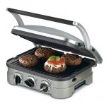 O Cuisinart Griddler Deluxe leva os grelhados a um novo nível. Oferece seis opções de culinária tentadoras. Placas reversíveis de grelha e chapa, combinadas com controle de temperatura de zona dupla, dão aos cozinheiros domésticos controle total. Esta chapa é perfeita para fazer panquecas e ovos no café da manhã, paninis e sanduíches abertos no almoço e hambúrgueres ou fajitas no jantar. A superfície de grelha extra grande é ideal para entreter uma multidão ou fazer refeições em família.