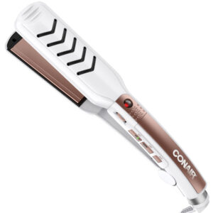 Com desempenho potente mesmo em um formato mini, a chapinha alisadora Conair CR300 conta com placas revestidas de cerâmica que aquecem rapidamente e alcançam até 200°C, ajudando a alisar os fios com suavidade, reduzir o frizz e proporcionar mais brilho ao cabelo. O revestimento cerâmico distribui o calor de forma uniforme, evitando pontos excessivamente quentes e contribuindo para um acabamento mais bonito e natural, semelhante ao visual feito em salão. Além disso, o cilindro integrado atinge até 180°C, oferecendo versatilidade para criar ondas leves ou dar forma às pontas com facilidade.