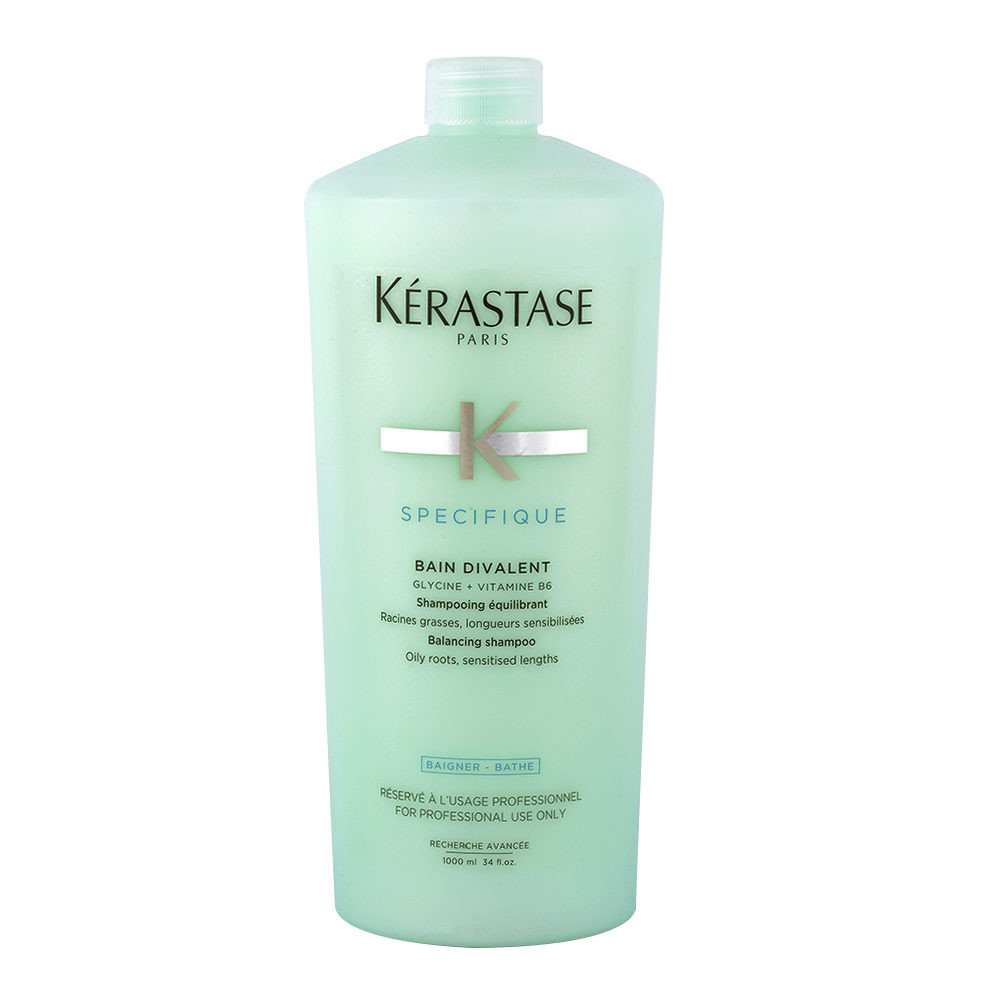 KÉRASTASE BAIN DIVALENT da série Spécfique é um shampoo de cuidado que concilia o couro cabeludo oleoso com as pontas secas. O couro cabeludo recupera o equilíbrio e fica limpo e bem cuidado.