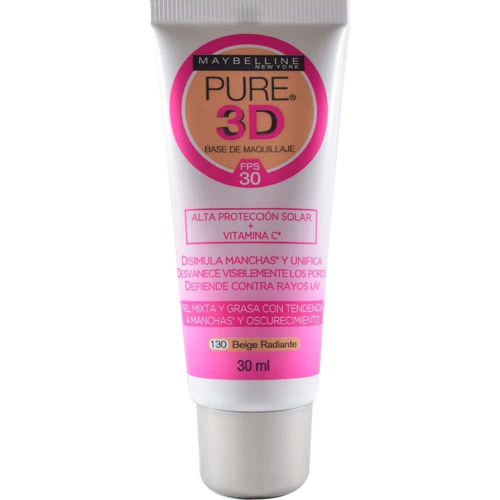 Pure Makeup 3D da Maybelline é a primeira base de maquiagem com fluido matificante com FPS 30. Maquiagem + tratamento + proteção solar!