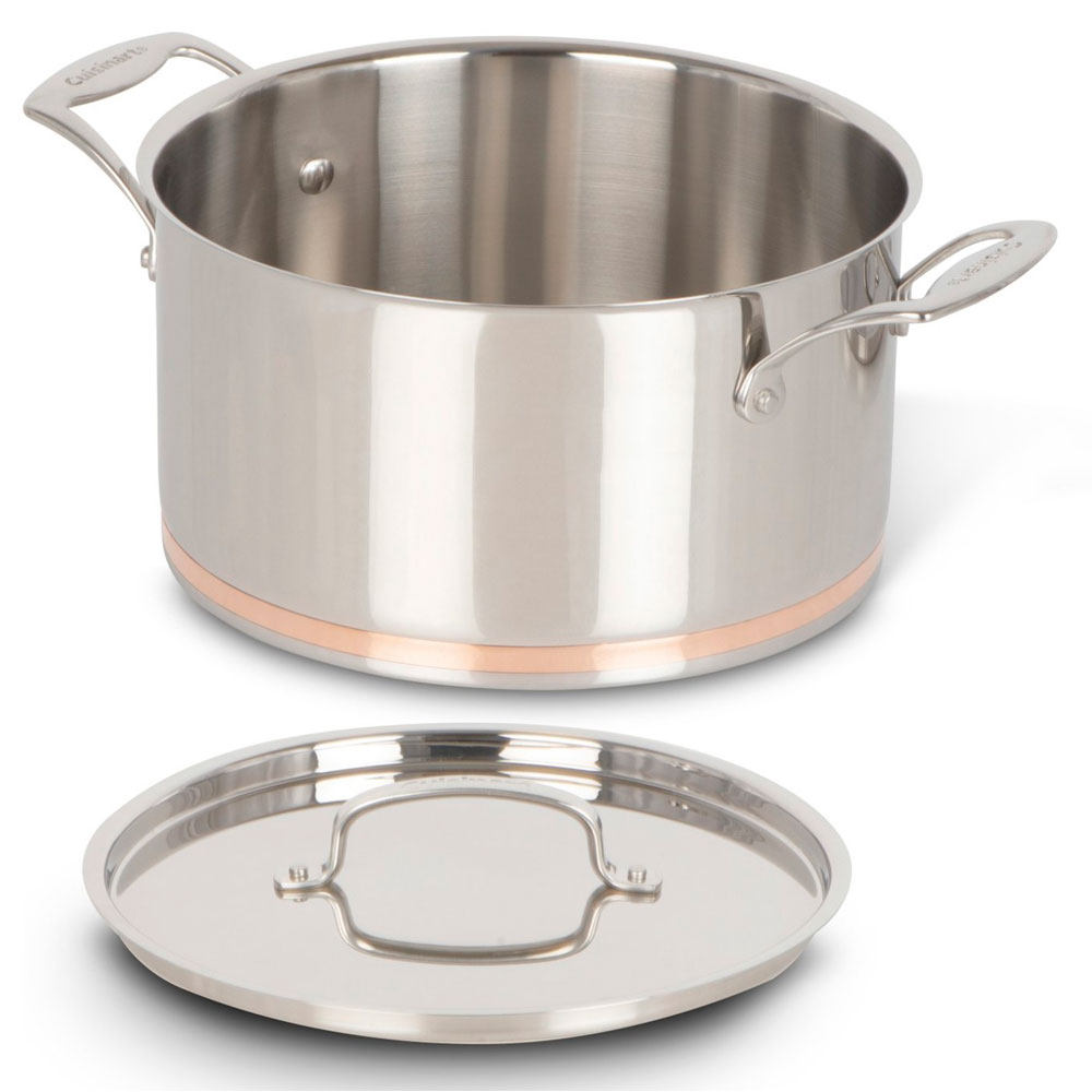 A panela holandesa com tampa Cuisinart 89FB44-24C oferece aquecimento rápido e uniforme graças à base de cinco camadas com aço inoxidável, alumínio e cobre. O interior em aço inoxidável não altera sabores e mantém a aparência ao longo do tempo. As alças rebitadas garantem segurança e permitem uso em forno até 260°C. A tampa ajuda a preservar calor e umidade durante o preparo. É uma opção versátil, durável e funcional para o uso diário na cozinha.