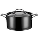 A estrutura robusta em aço inoxidável oferece durabilidade prolongada e facilidade na limpeza, além de manter o visual moderno da cozinha. A alça Cool Grip™ em aço inoxidável fundido maciço foi projetada para permanecer fria no fogão, proporcionando uma pegada confortável, segura e bem equilibrada durante o manuseio, mesmo quando a panela está cheia. Esse detalhe faz diferença no uso diário, trazendo mais confiança ao cozinhar.