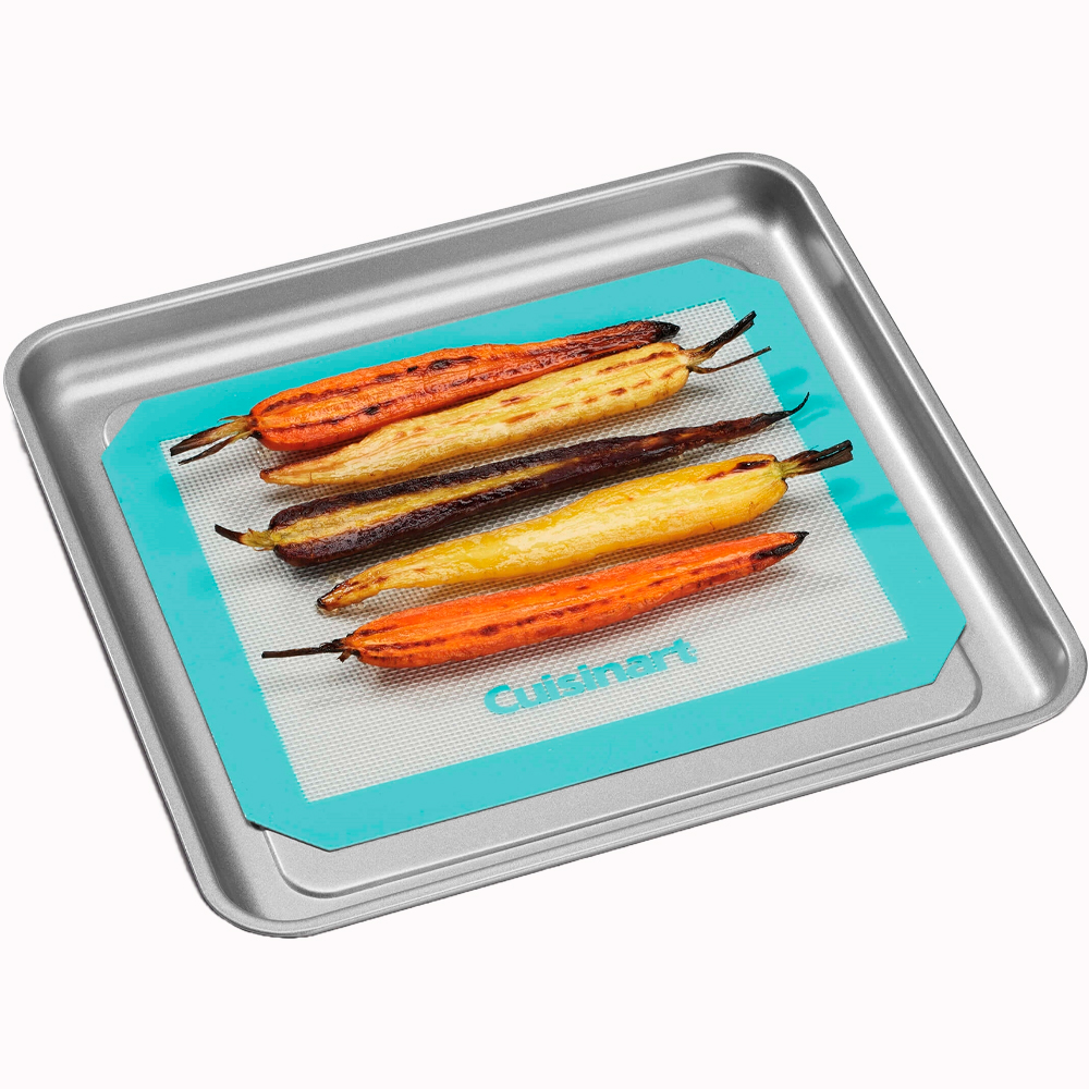 Guarde o papel manteiga e intensifique seu jogo de cozimento com esteiras de silicone reutilizáveis, antiaderentes e de aquecimento uniforme da Cuisinart. Os tapetes de meia folha e torradeira têm superfícies lisas e antiaderentes que repelem gorduras, eliminando a necessidade de adicionar óleos, sprays e manteiga para evitar que grudem.