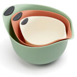 Mistura fácil e segura para o meio ambiente. Feito de fibra de bambu, este conjunto ecológico de 3 tigelas tem pouco ou nenhum impacto ambiental. Mas certamente terão um impacto positivo na sua cozinha enquanto você prepara, mistura e serve uma variedade de alimentos.
