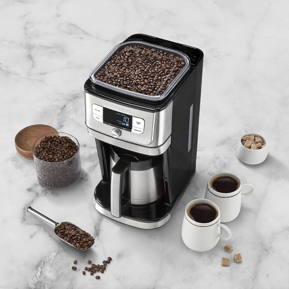 A cafeteira com moedor Cuisinart combina moagem na hora, controle de intensidade e preparo programável para entregar um café sempre fresco e aromático. Possui jarra térmica de 10 xícaras, moedor profissional e sistema DirectFlow para infusão contínua. Permite usar grãos ou café pré-moído, adaptando-se à rotina. Conta com filtro permanente, filtro de água com carvão ativado e visor LCD intuitivo. Ideal para quem busca praticidade sem abrir mão da qualidade no café diário.