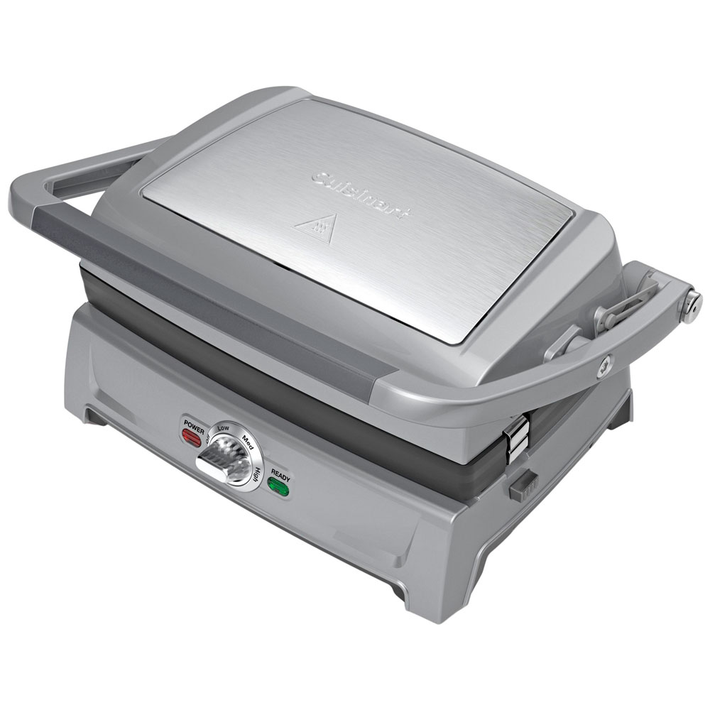 O grelhador compacto Cuisinart GR-102C combina praticidade e versatilidade para preparar diferentes receitas no dia a dia com excelente desempenho. Suas placas reversíveis oferecem cinco modos de grelhar, permitindo desde hambúrgueres até paninis crocantes. O revestimento cerâmico antiaderente e o escoamento otimizado facilitam a limpeza e deixam o preparo mais leve. O controle de temperatura simples e as luzes indicadoras tornam o uso intuitivo para qualquer pessoa. É uma solução eficiente para cozinhar mais, ocupando pouco espaço e com resultados consistentes.