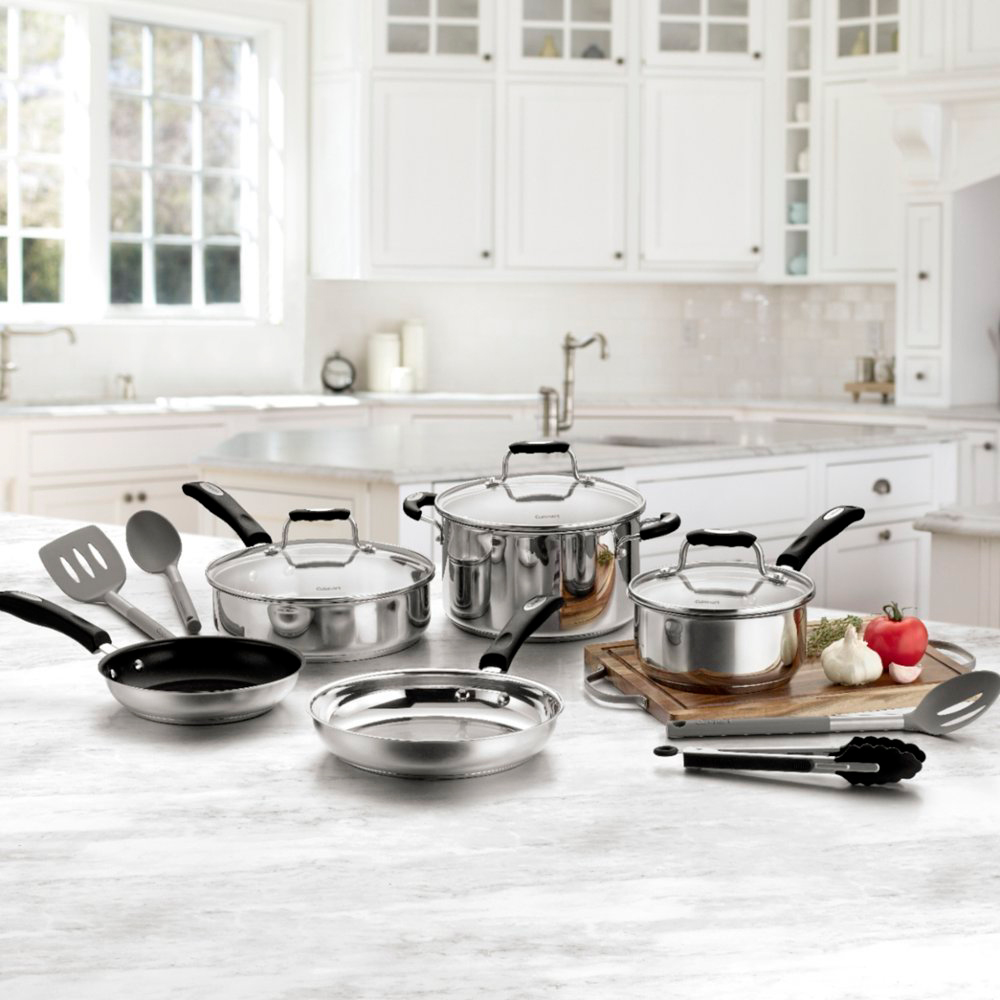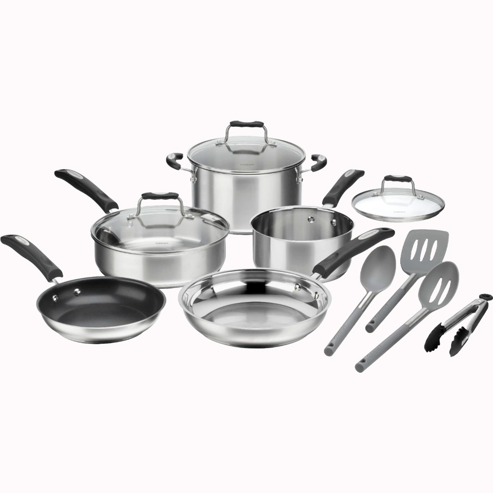 Este conjunto de aço inoxidável Cuisinart pode ser lavado na máquina de lavar louça para uma limpeza rápida após o cozimento.