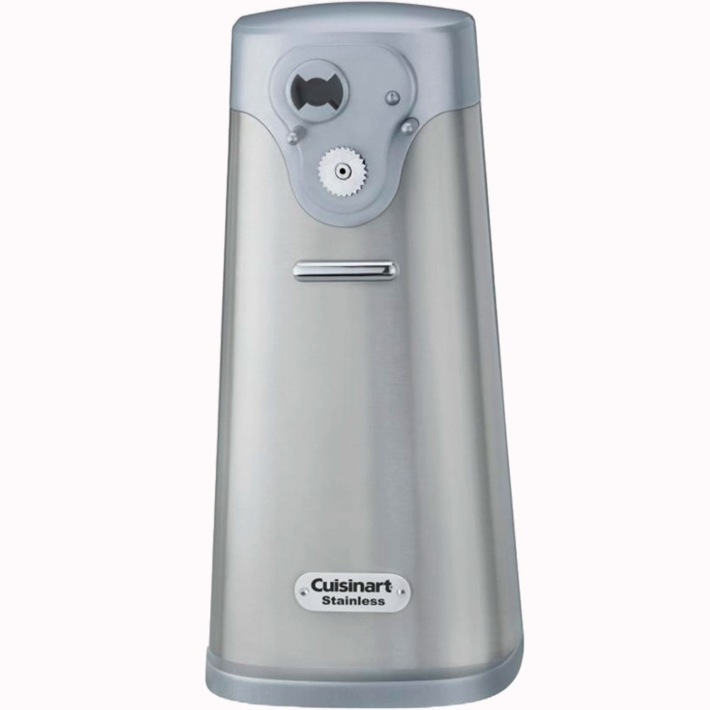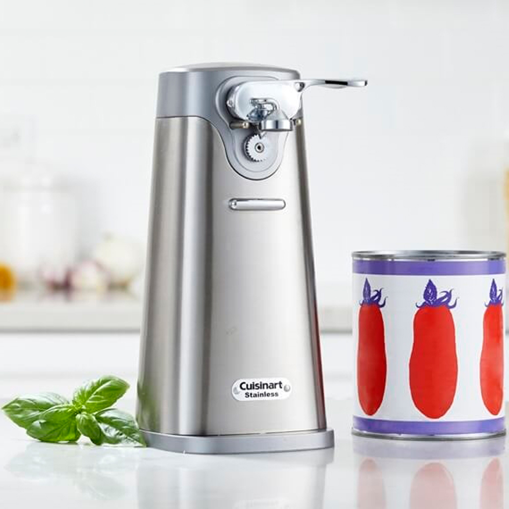 Com um toque, o abridor de latas de aço inoxidável Cuisinart Deluxe facilita o trabalho com latas de qualquer tamanho padrão. A lâmina de precisão Power Cut corta latas sem esforço, mantida no lugar pelo prático suporte magnético da tampa. Cuisinart projetou o braço para ser removível, facilitando a limpeza.