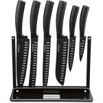 Inigualável em durabilidade, o Pakkawood, um composto de madeira e plástico, é tão fácil de cuidar quanto o plástico, com aparência, peso e toque de madeira. Projetadas ERGONOMICAMENTE, as facas são seguras, estáveis ??e precisamente afiadas para um fio extremamente afiado e fino.
