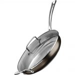 Isso resulta em um cozimento mais uniforme e na preservação dos sabores dos alimentos. O exterior da frigideira é feito de aço inoxidável escovado, conferindo um visual moderno e elegante, com aros polidos que agregam um toque de sofisticação.