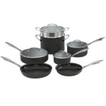 Uma panela maior coberta com uma inserção de massa e uma inserção de vaporizador universal torna este conjunto de luxo ainda mais versátil. O refogado coberto também é maior, e a frigideira de 10 “vem com sua própria tampa bem fechada para permitir que os cozinheiros tenham sabor e textura após fritar ou dourar os alimentos.