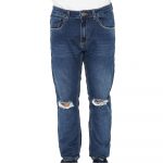 Calça masculina John John Jeans, possui fecho com botão e zíper. E também possui um rasgo no joelho.