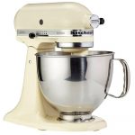 A batedeira KitchenAid fica na vertical em sua cozinha. Permite amassar massas grossas de forma rápida e fácil. Além do gancho de massa, você também receberá um batedor de arame e um gancho chato para misturar. Dessa forma, você pode misturar na tigela preparações leves e empanadas, como claras ou natas de ovo.