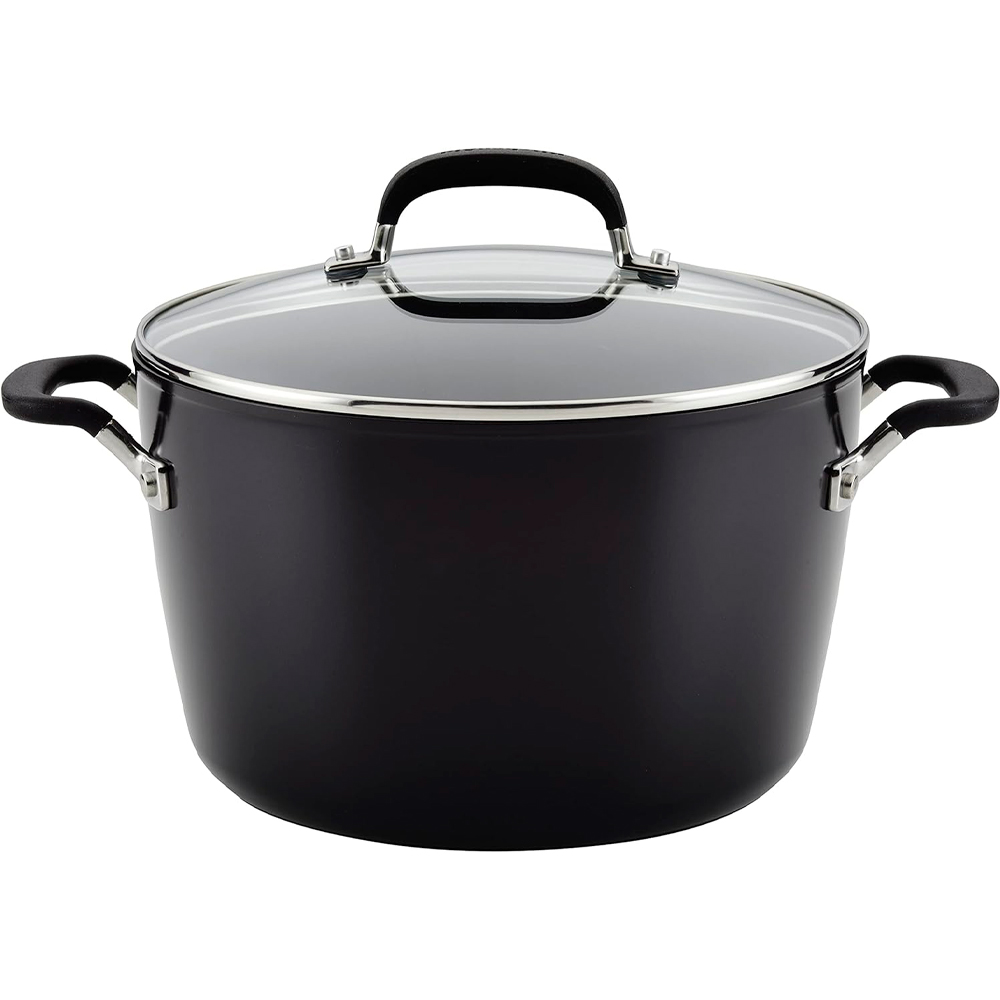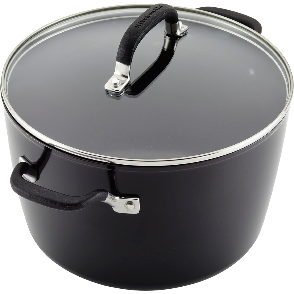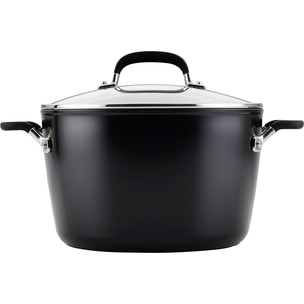 Descubra a panela antiaderente anodizada dura com tampa da KitchenAid, o utensílio perfeito para quem ama criar refeições exclusivas e saborosas. Com uma capacidade generosa de 8 litros, esta panela foi projetada para atender às suas necessidades culinárias diárias.