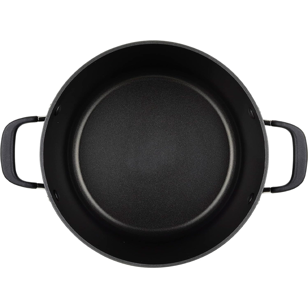 Feita de alumínio anodizado duro, esta panela é seis vezes mais dura do que o alumínio tradicional, oferecendo durabilidade excepcional para o uso diário. O interior é revestido com um antiaderente de camada tripla, permitindo que os alimentos sejam liberados com facilidade e mantendo a panela com aparência de nova por mais tempo, mesmo ao preparar ensopados ricos e molhos para massas.