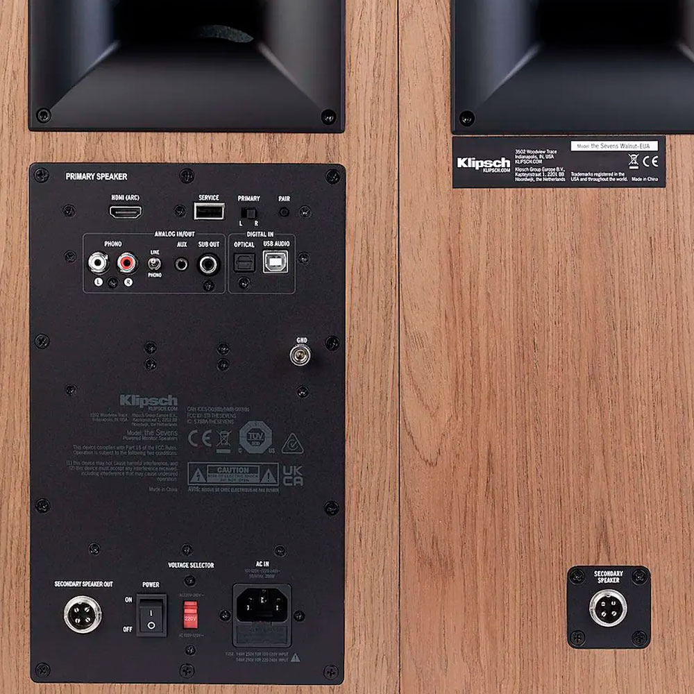 Caixa de Som Sem Fio Klipsch Bookshelf The Seven Acústicas 400W Woofers 6.5” (PAR) Walnut